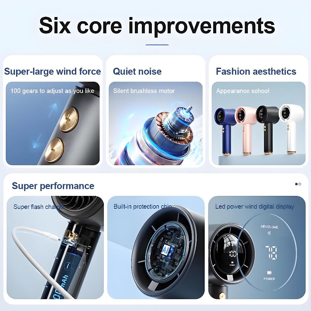 [Mall] Mini kipas Strong Wind 100 Speed Fan Digital Display Adjustable Wind Speed Turbocharged Fan Suitable for Out