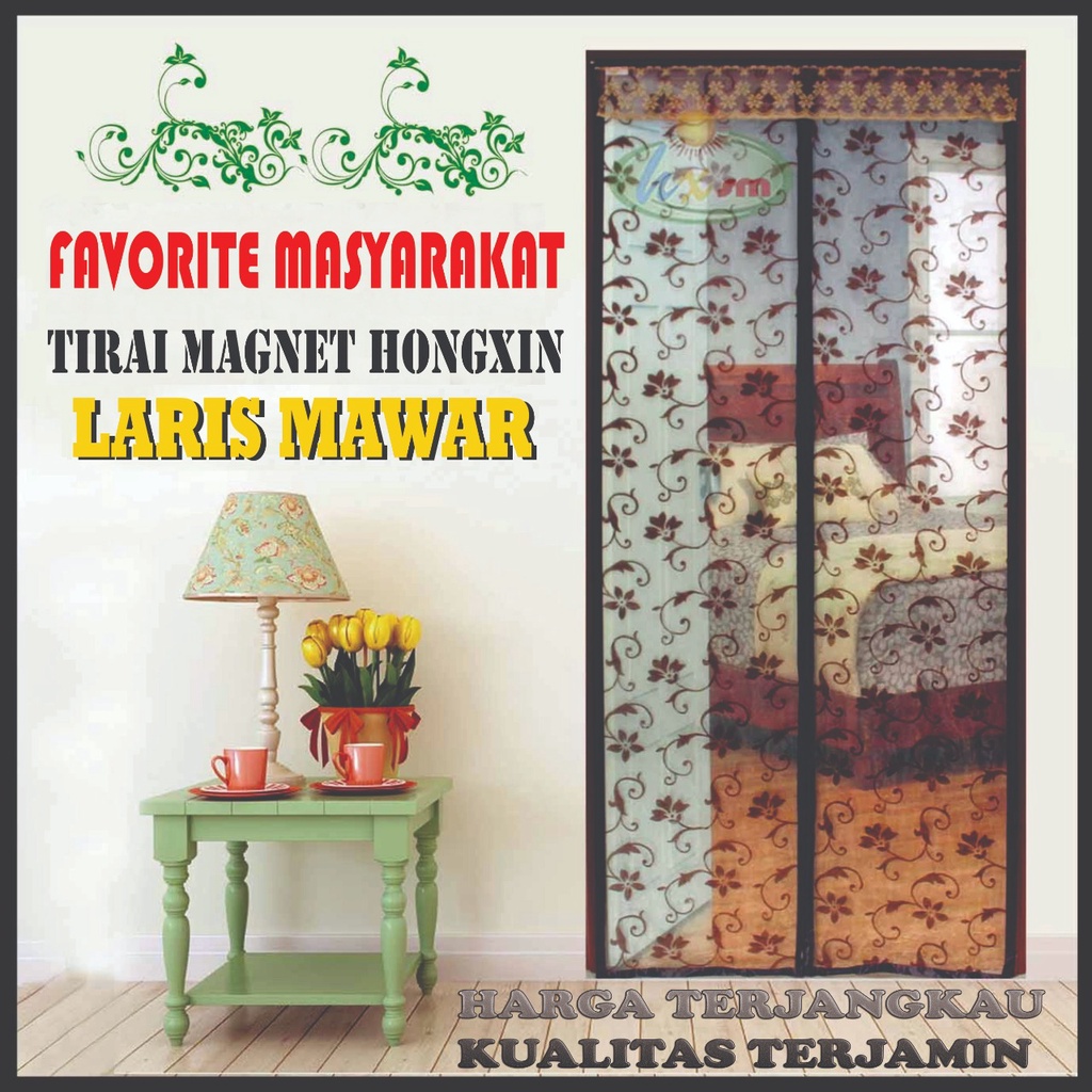[Star] Tirai Magnet Merk Hongxin - Mawar Coklat Ukuran 90x210cm Gorden Transparan