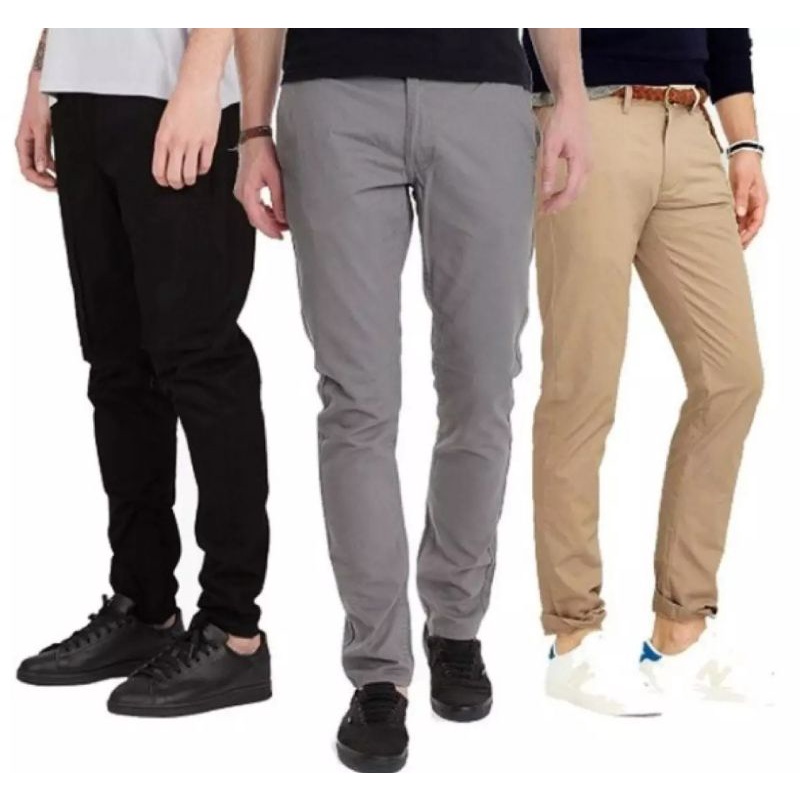 Celana Chino Panjang Pria Slimfit Casual Formal Hitam Abu Cream