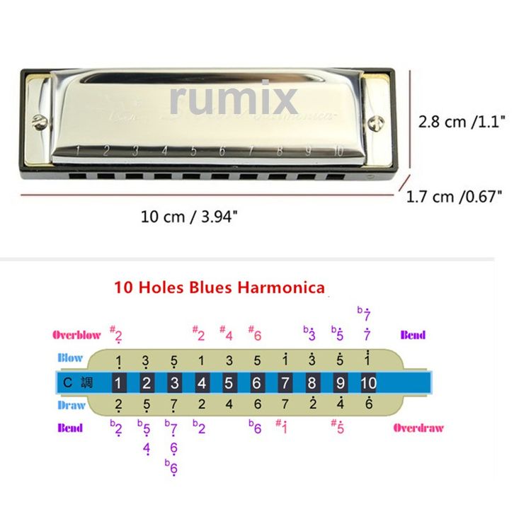 Harmonika Swan 10 lubang Nada C Harmonica 10 Hole Diatonik Blues Jazz Rock Country 10 Holes Nada C