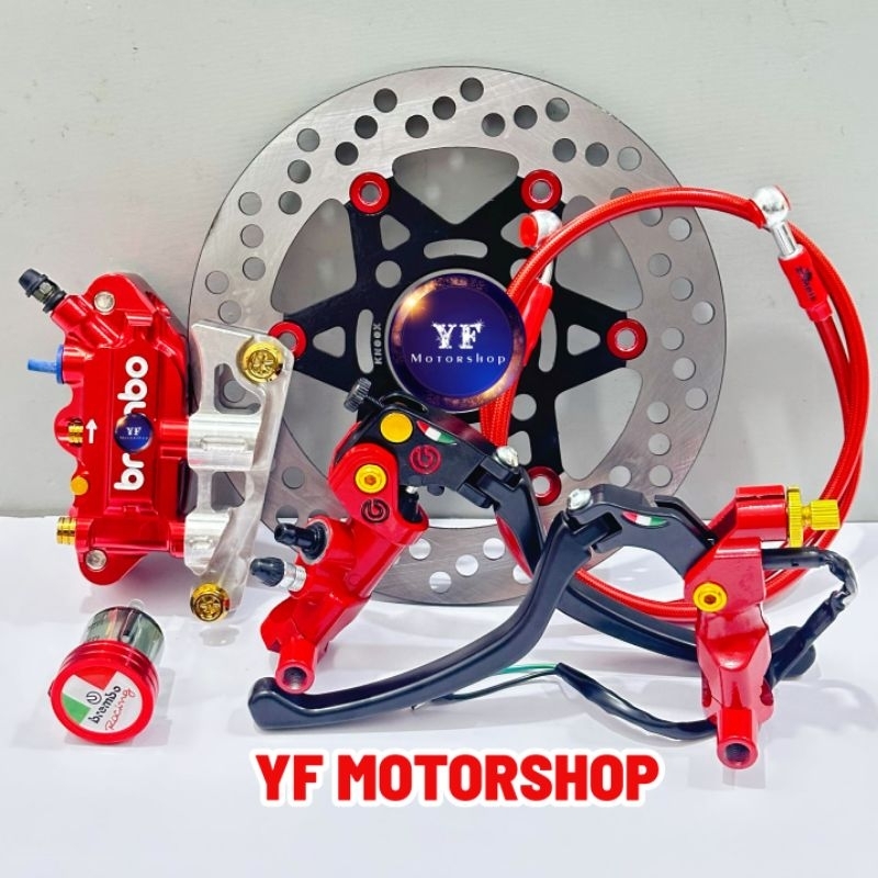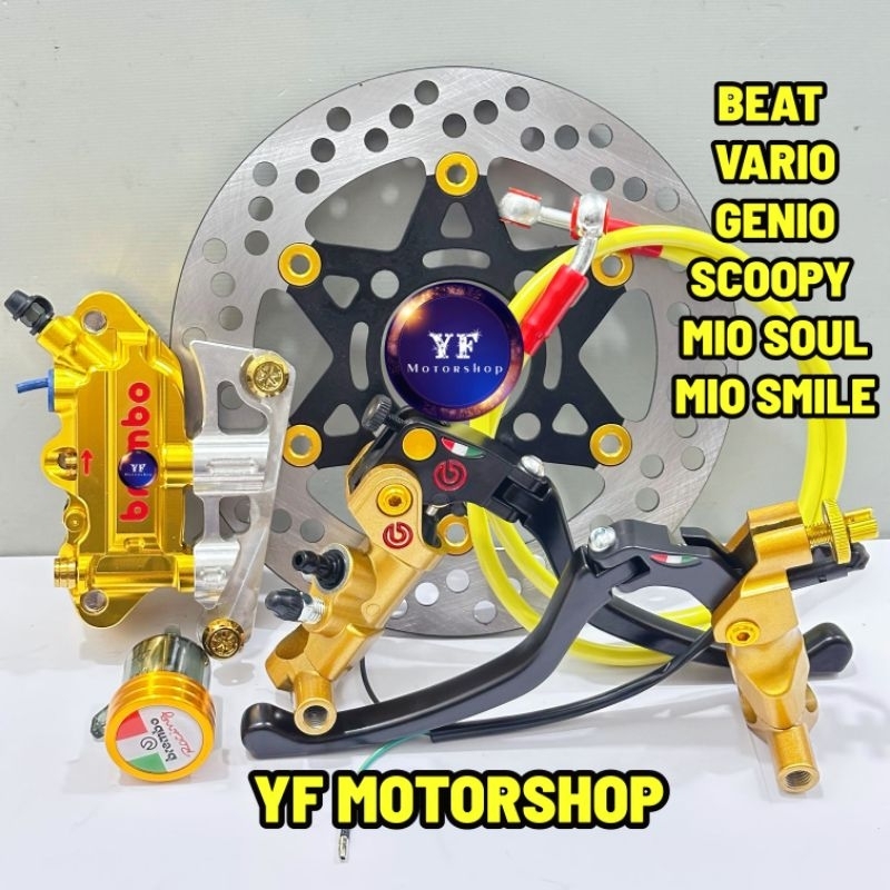 Paket Lengkap Pengereman 4 Piston MIO, BEAT, VARIO, SCOOPY, GENIO, RING14 master rem + kaliper 4 piston + breket