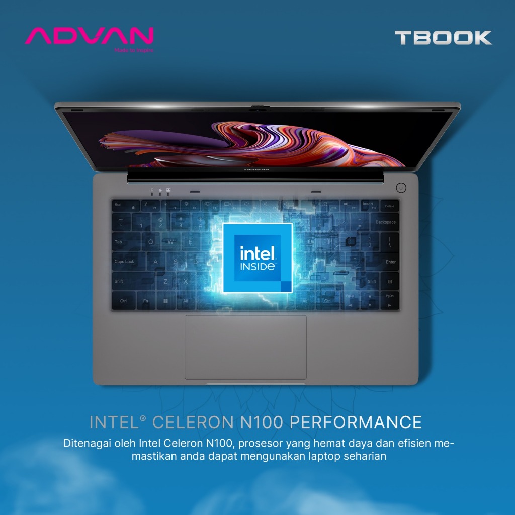 [Star] laptop advan tbook celeron n100 intel n100 4gb/128gb upgradabe 14" hd free windows 11 garansi resmi 1 tahun