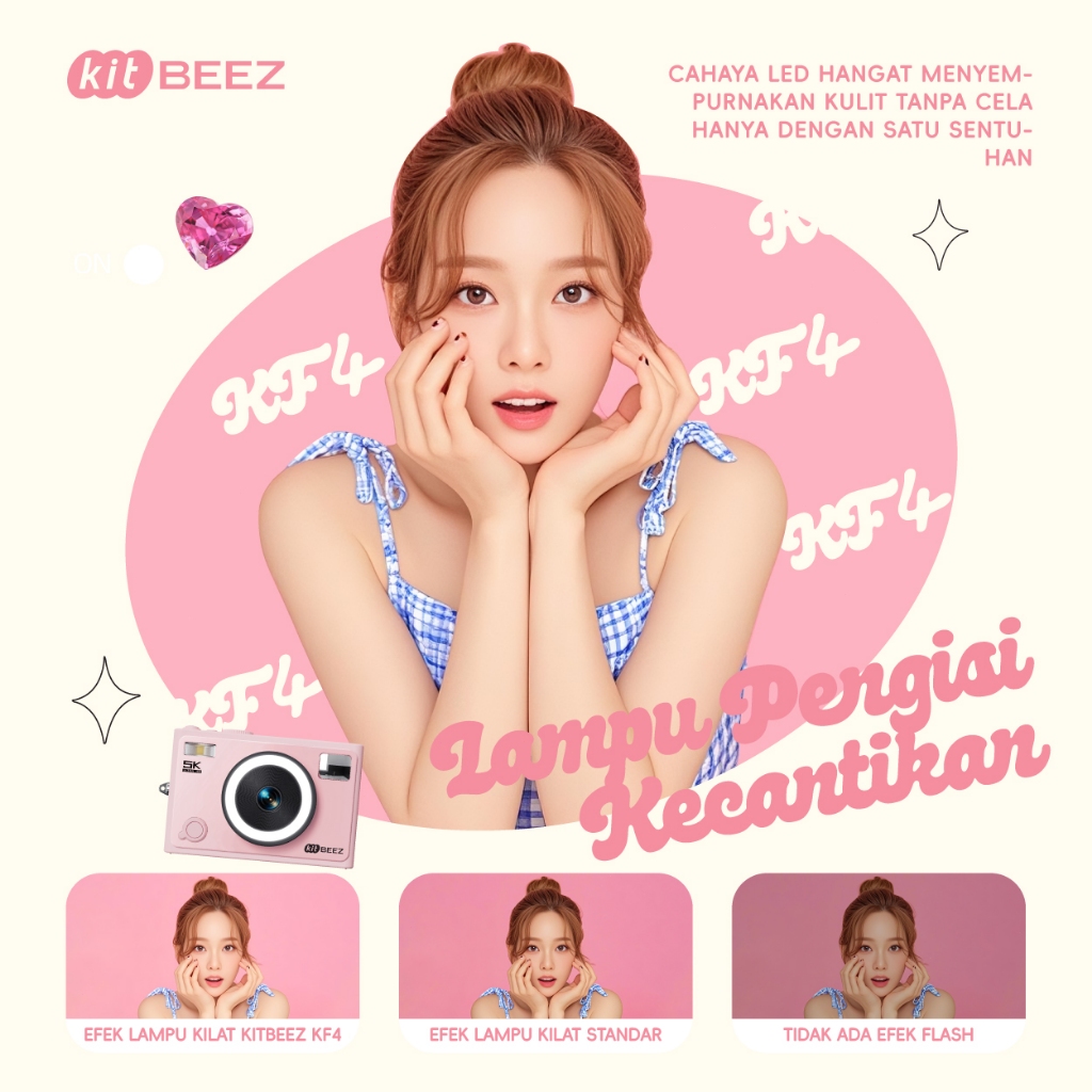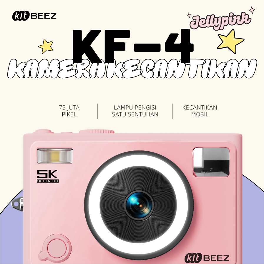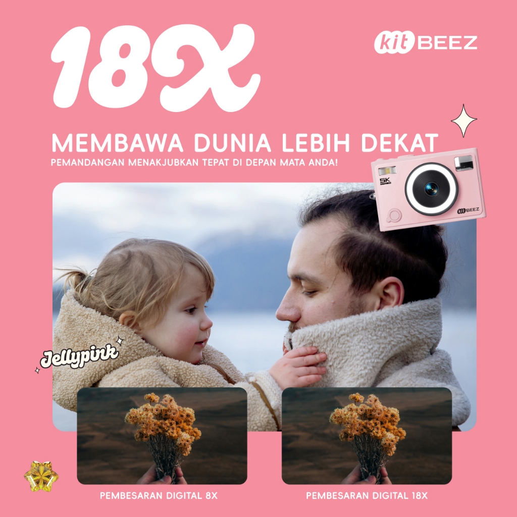 KiTBEEZ KF-4 JellyPink Kamera Digital WiFi 75MP 5K 18X Zoom Digital Camera With Adjustable Fill Light 1300mAh