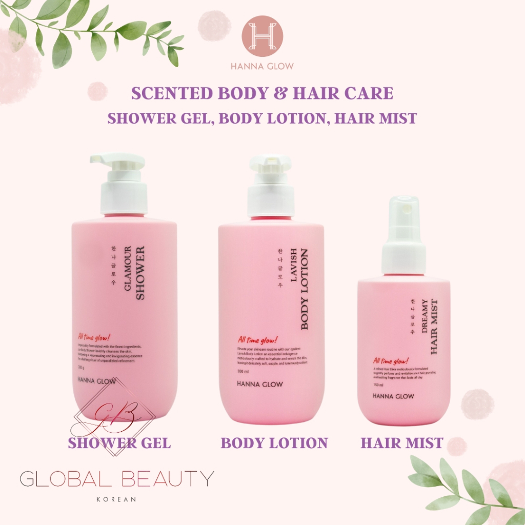 Hanna Glow Scented Body Lotion Shower Gel and Hair Mist