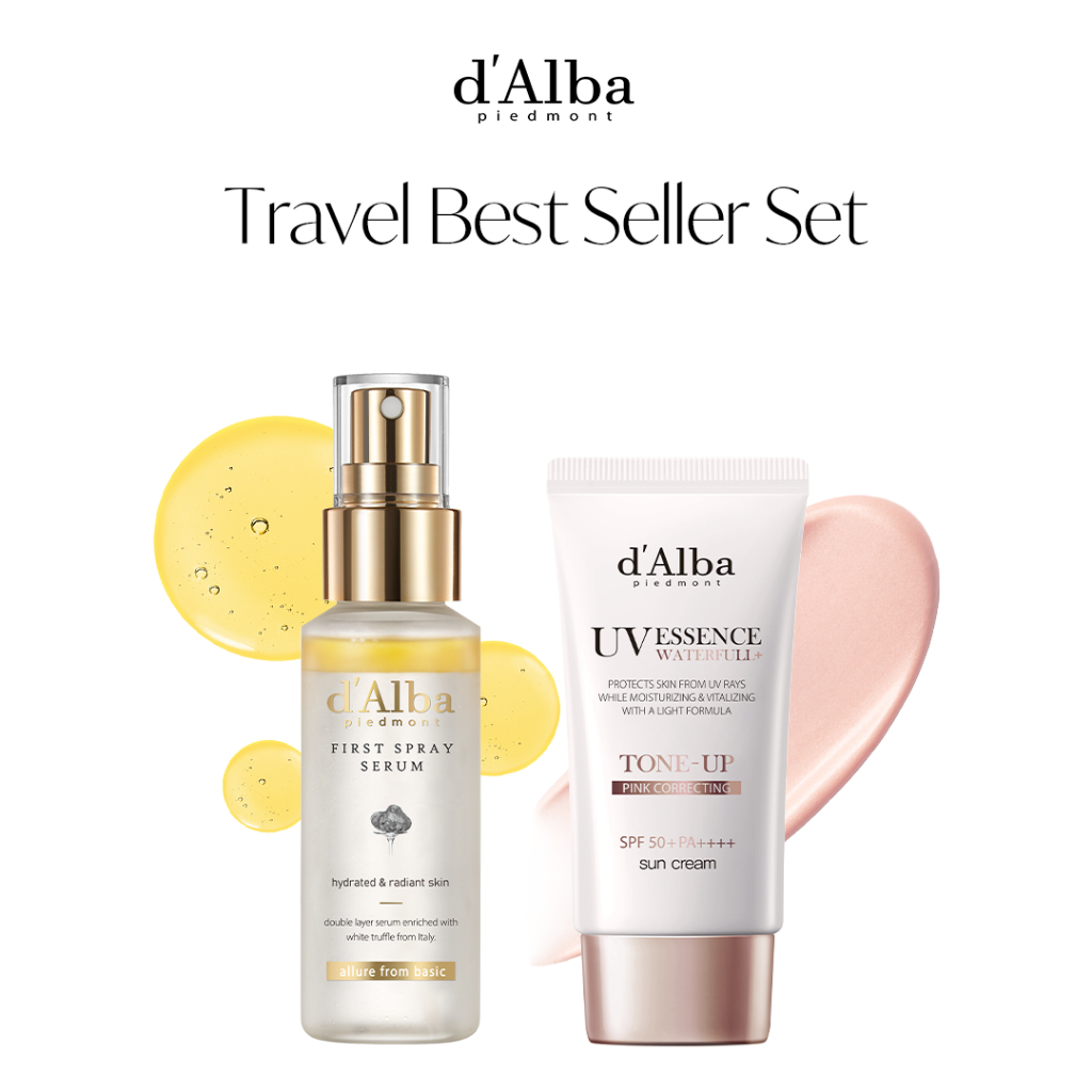 Travel Best Seller Set (d'Alba White Truffle First Spray Serum 50ml + d'Alba Waterfull Tone Up Sun Cream 50ml)