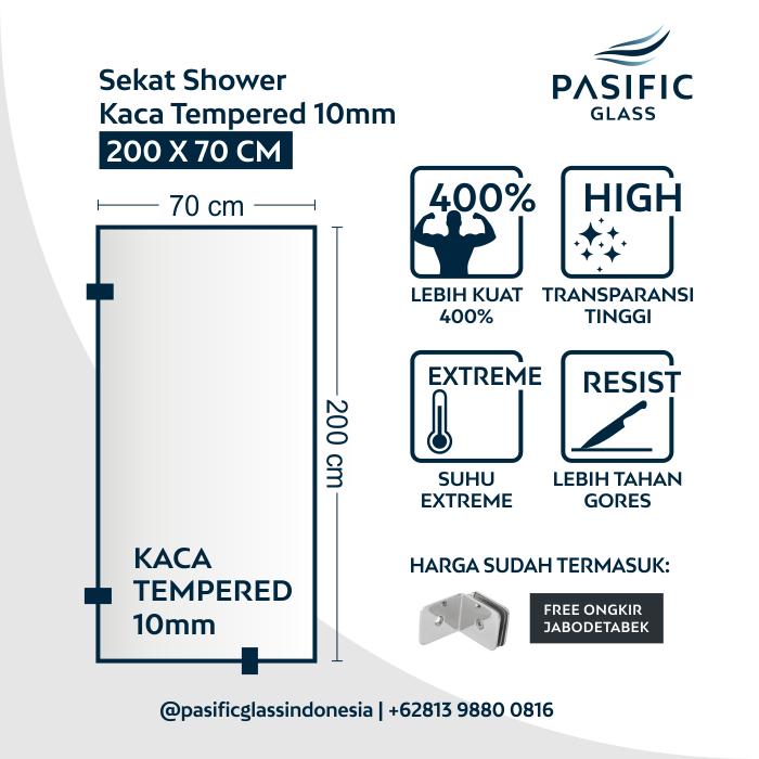 SEKAT KAMAR MANDI PARTISI KACA TEMPERED 10MM - 200 X 60CM