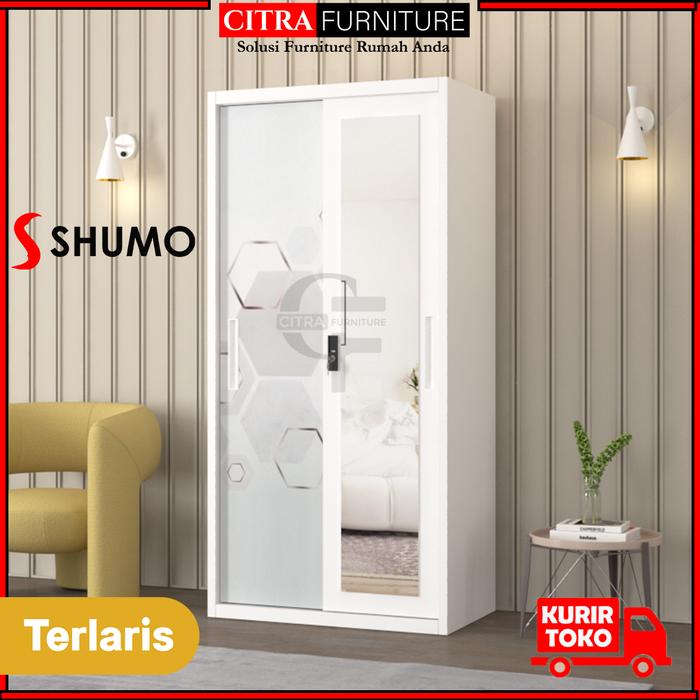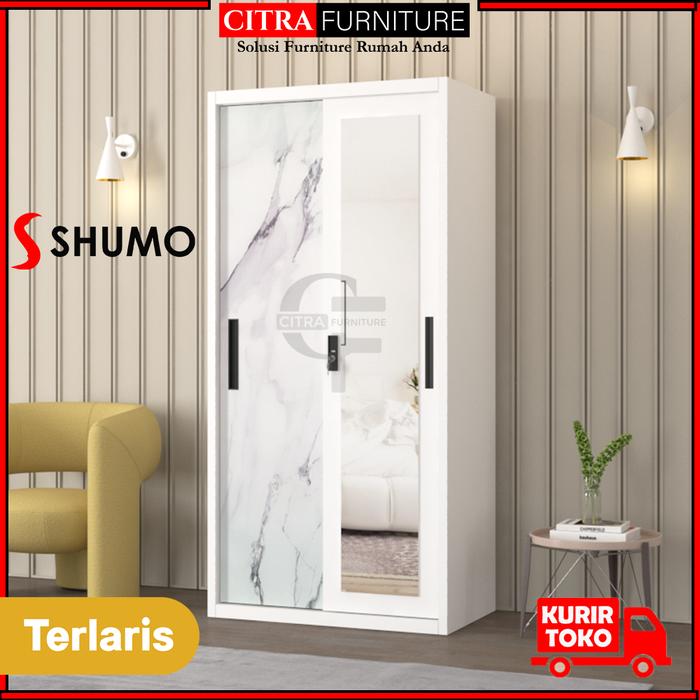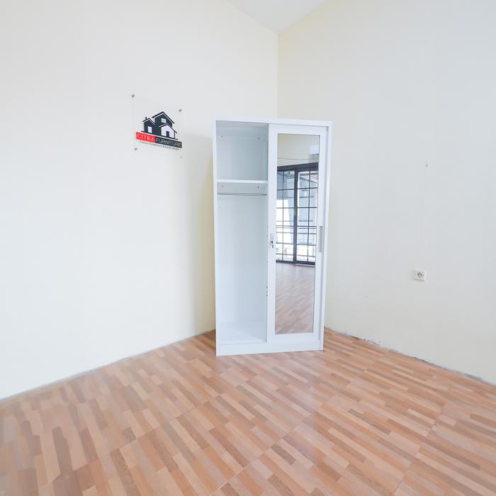 LEMARI PAKAIAN BESI 2 PINTU SLIDING CERMIN | LEMARI BAJU SLEDING BESI - MOTIF-E, TANPA RAKIT