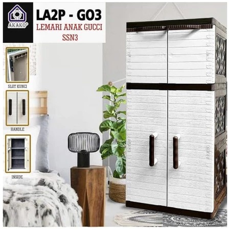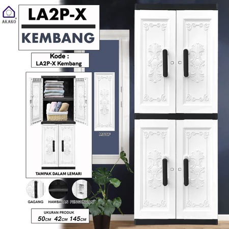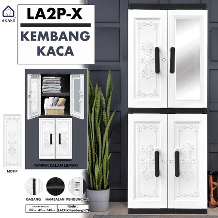 Lemari - rak baju - lemari pakaian - Lemari Pakaian Baju Plastik LA2P AKAKO Cermin Kaca 4 Susun MURAH PUTIH