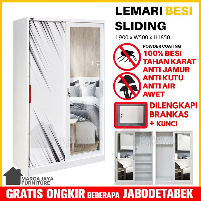 LEMARI BAJU PAKAIAN BESI JUMBO SLIDING 2 / 3 PINTU ANTI RAYAP & BANJIR - JUMBO GARIS, TANPA RAKIT