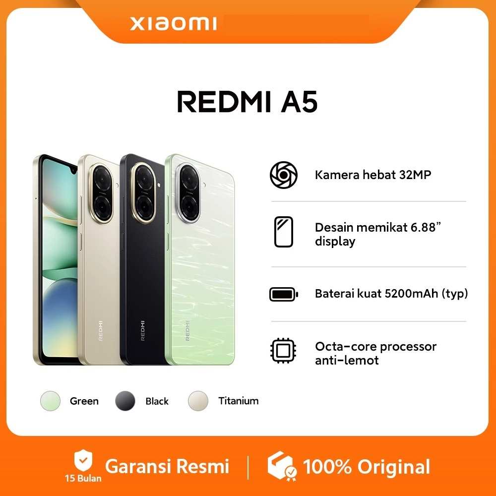 Hp Xiaomi Redmi A5 (4+4GB*/128GB) | Kamera hebat 32MP | Desain memikat 6.88"display | Baterai kuat 5200mAh