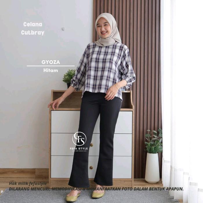 HIGHWAIST FLARE PANTS KULOT GYOZA BY FEFASTYLE - CELANA CUTBRAY WANITA TEBAL PANJANG NYAMAN - BROKEN WHITE, FIT S-M (40-55KG)