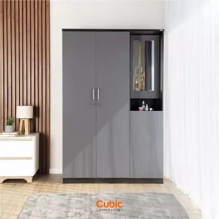 Lemari - rak baju - lemari pakaian - Lemari Pakaian Cermin Minimalis 3 Pintu / Lemari Baju - LUNA LPM 301