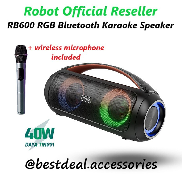 Robot RB600 Karaoke Speaker with Wireless Microphone 40W IPX5/Salon Aktif/Musik Box Bluetooth Full Bas