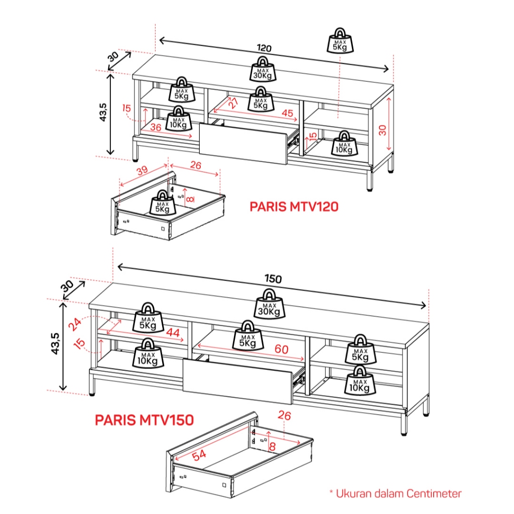 PARIS MTV120 CB , PARIS MTV150 CB, Dections 120x112 cm