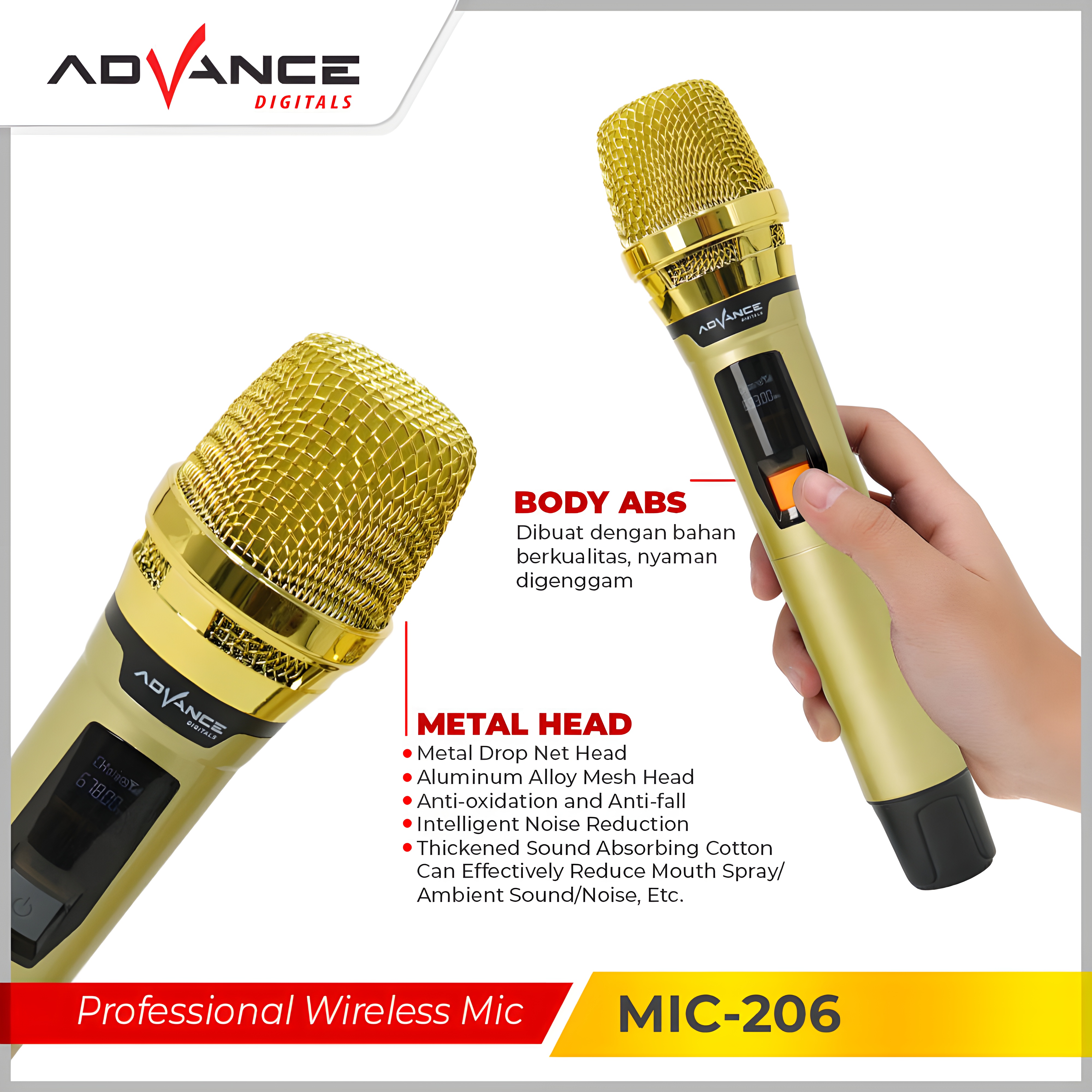 Advance MIC-206 Double Digital Mic Wireless Microphone / Metalic Mikrofon Original Garansi Resmi