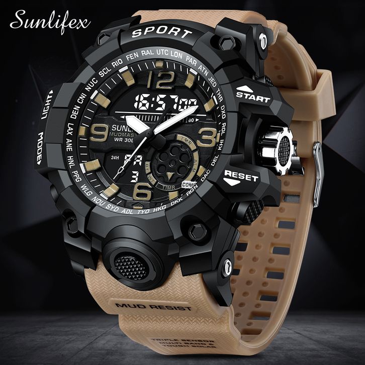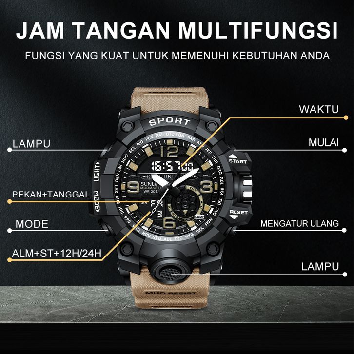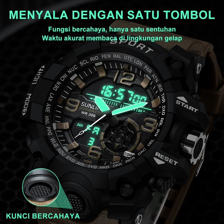 Sunlifex Jam Tangan Pria D002 Original Olahraga Jam Digital Multifungsi Tali Silikon Jam Tangan Cowok