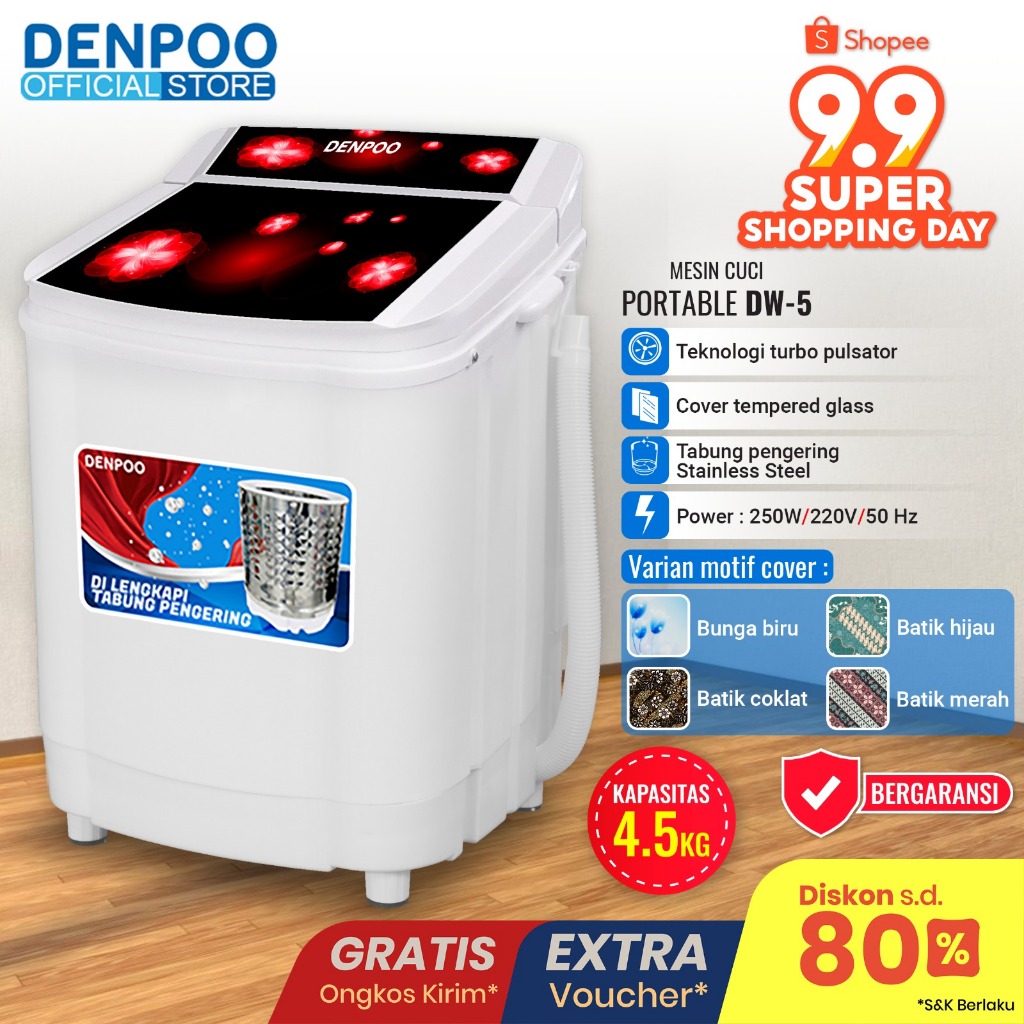 MESIN CUCI PORTABLE DENPOO DW 5 - 4.5 KG MINI Bukan Sharp Aqua LG Polytron Sanken Samsung 10 Kg Original Murah