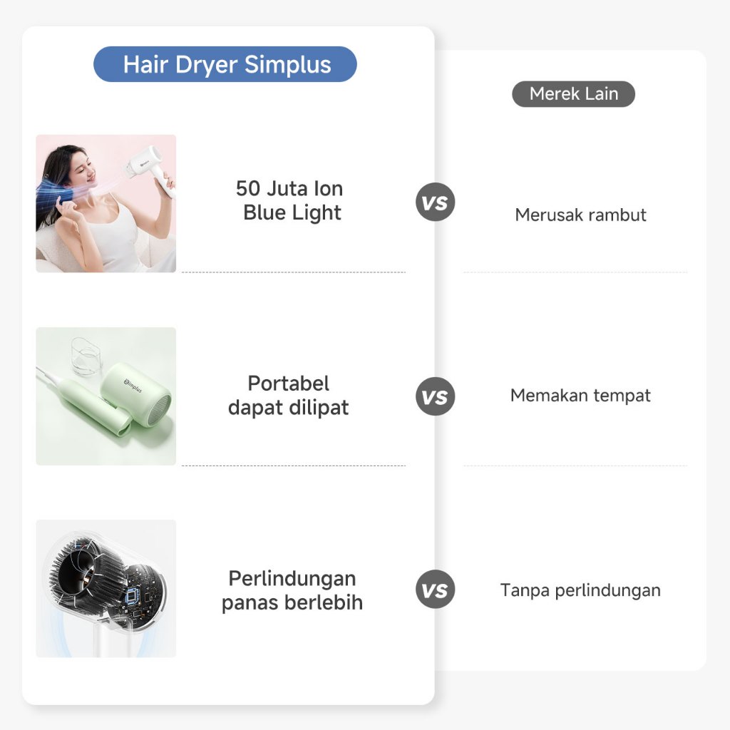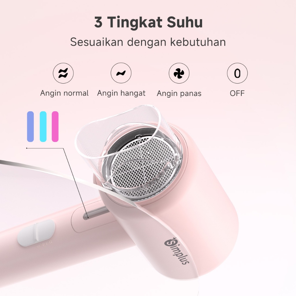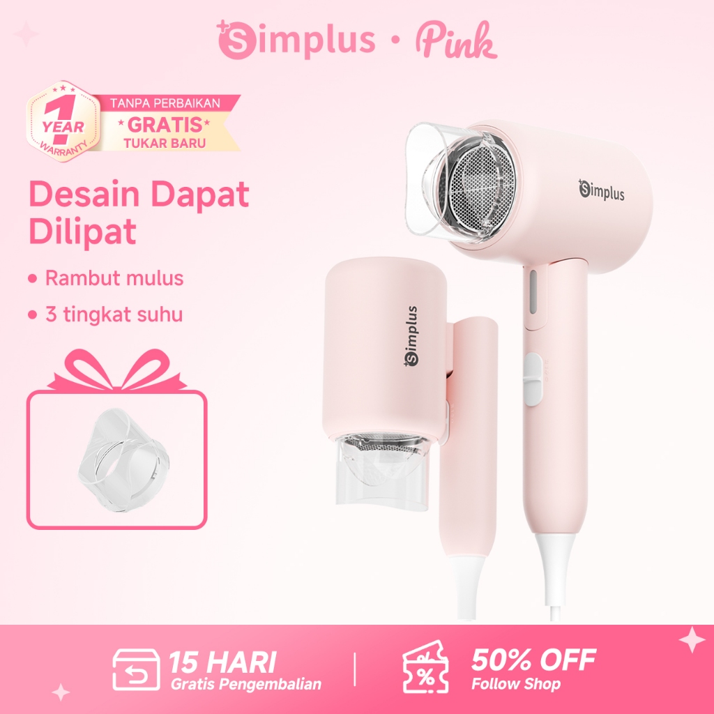 Hair Dryer Simplus Pink Foldable Dapat,ion Negatif,strong Wind,low Watt Original