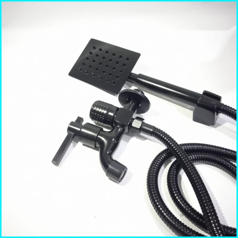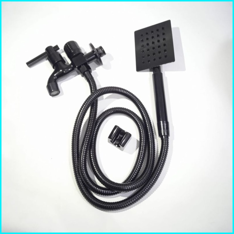 Paket Hand Shower Kotak Bulat Stainless Sus 304 Hitam Handshower Mandi Set Semprotan Sower Mandi Dan Kran Combo Black