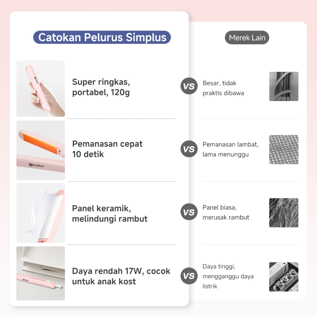 Catokan Mini Pelurus Rambut Portabel Super Ringan Pemanasan Cepat Pelurus Pengeriting Pink Original