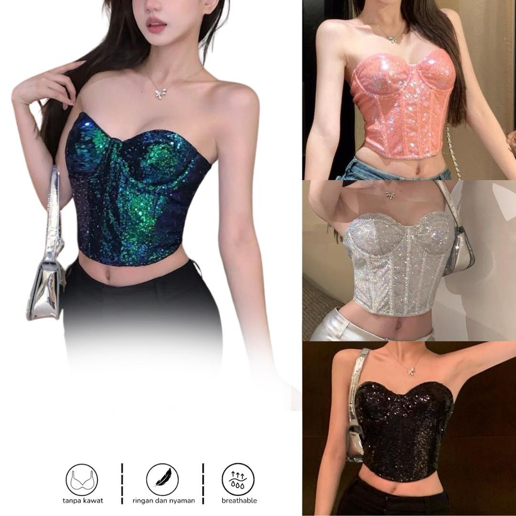 Bustier Top Sexy Lingerie Shining Bustier Set Sexy Corset Bra Wanita