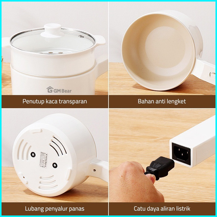 Gm Bear Panci Listrik Multifungsi 3 In 1 1692 - Panci Listrik Serbaguna Kukusan Listrik Alat Masak Listrik