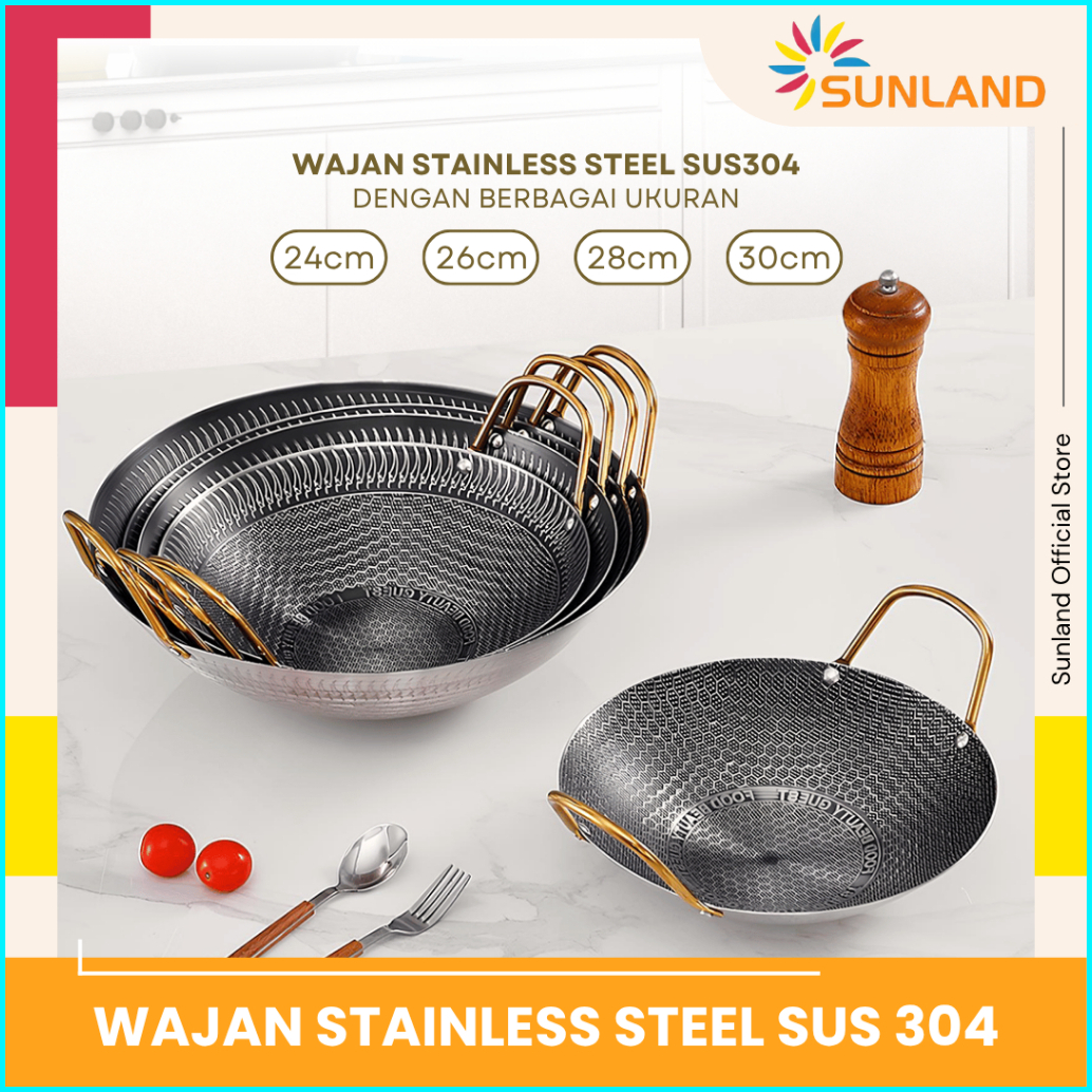 Sunland Wajan Penggorengan Anti Lengket Stainless Steel Sus 304 Kuali Premium Quality