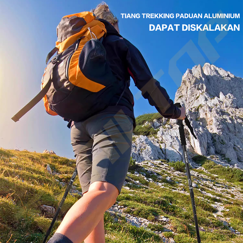 VICTORIA SHOP TrailTop Tracking Pole Lipat Tongkat Gunung Trekking Hiking Dapat Diatur Sesuka Hati 65-135cm