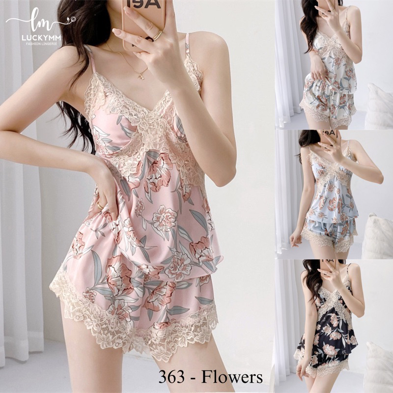 Luckymm Sleepwear Satin Baju Tidur Wanita Dewasa / Sexy Pajamas Satin Baju Tidur Setelan Wanita 363