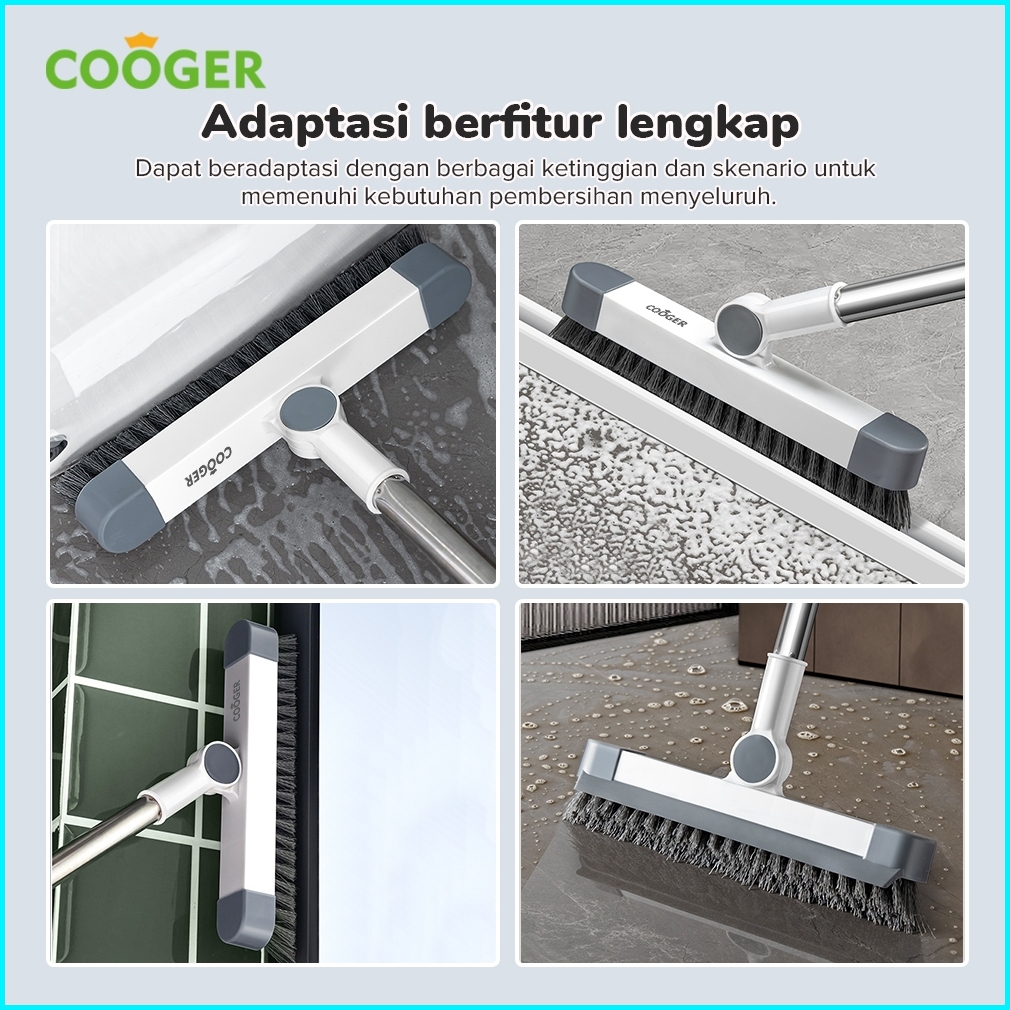 Cooger Sikat Kamar Mandi Gagang Panjang Multifungsi 2in1 Dengan Wiper Dapat Berputar Untuk Membersihkan Celah Kecil Dan