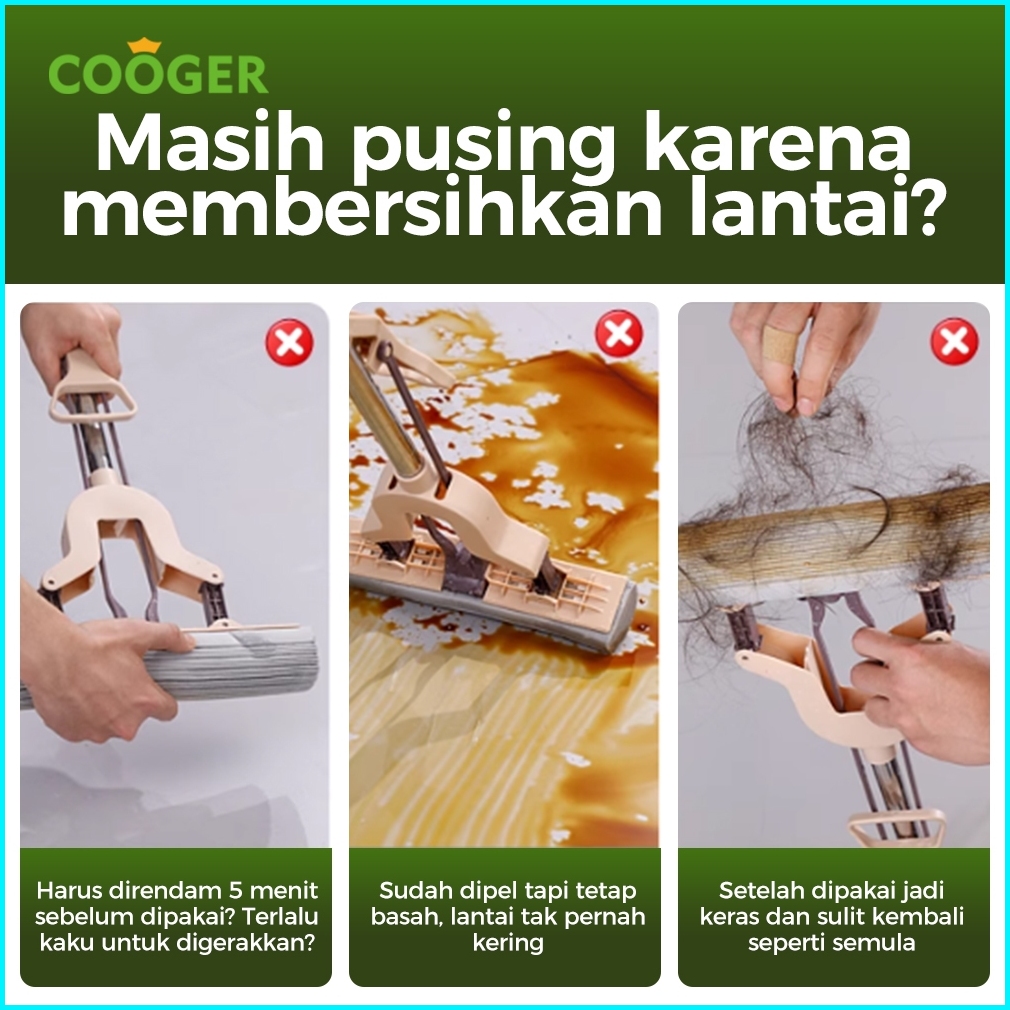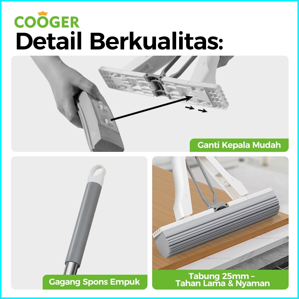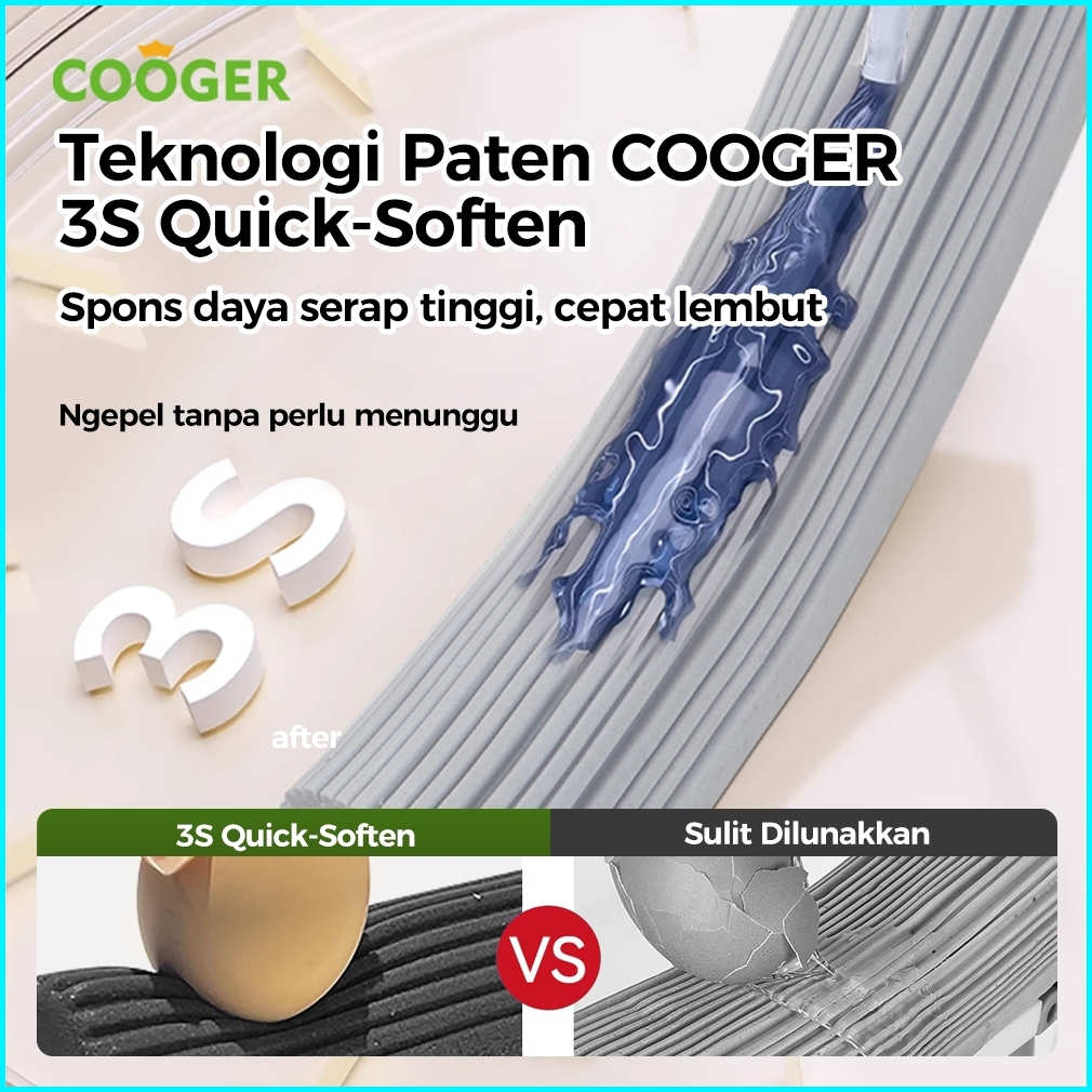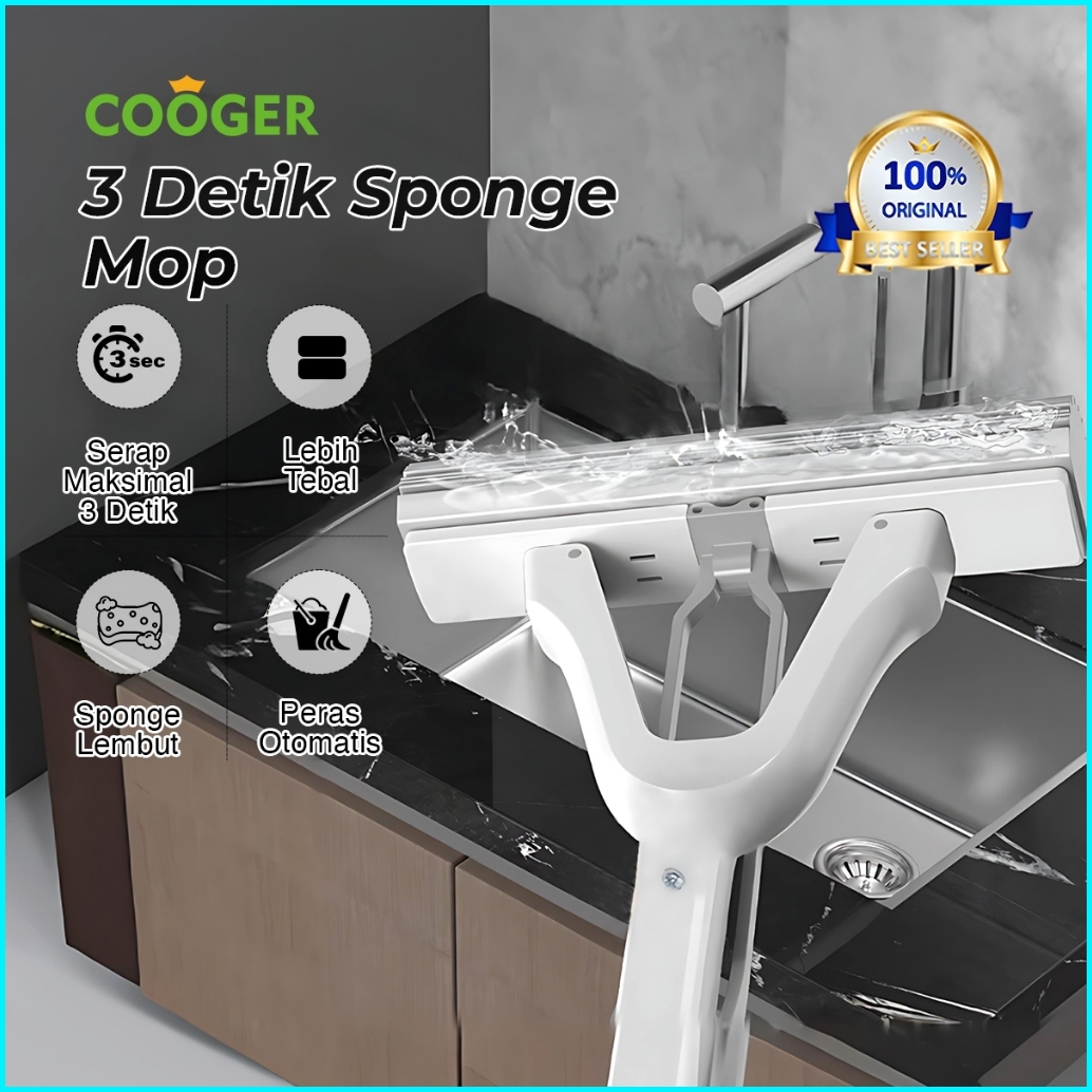 Cooger Sponge Mop Daya Hisap Tinggi 3 Detik Langsung Basah Alat Pel Busa Bahan Collodion Mop Serbaguna Gagang Panjang An
