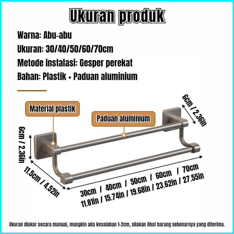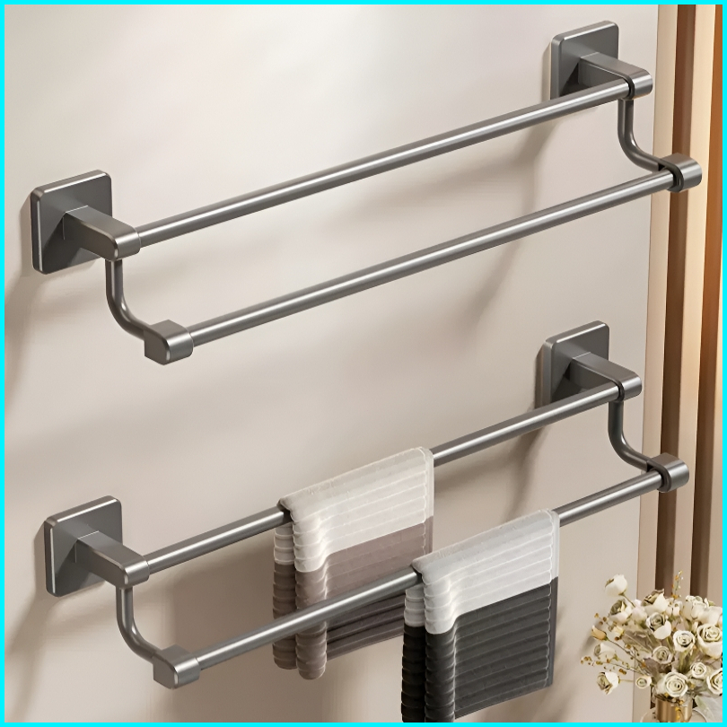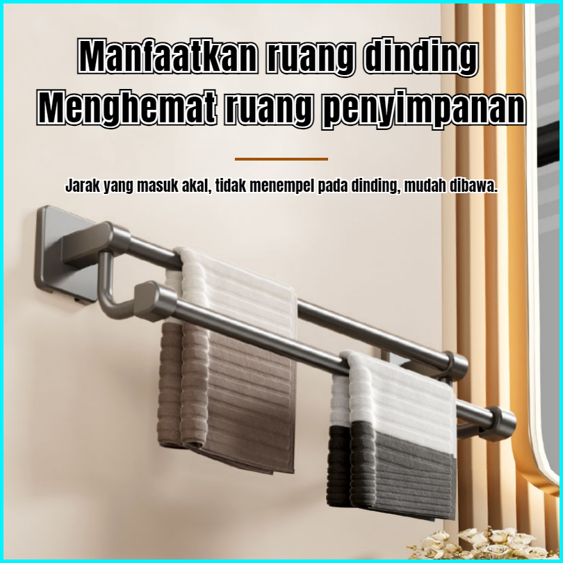 Rak Kamar Mandi Rak Handuk Gantungan Handuk Kamar Mandi Paduan Aluminium Rak Dinding Tempel Aesthetic Serbaguna Towel Ba