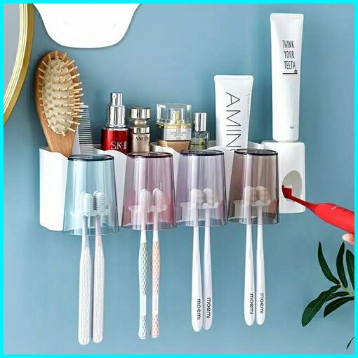 Tempat Sikat Gigi 4-cups Rak Kamar Mandi Tempat Sikat Gigi Estetik Tempat Sabun Kamar Mandi Tempat Odol