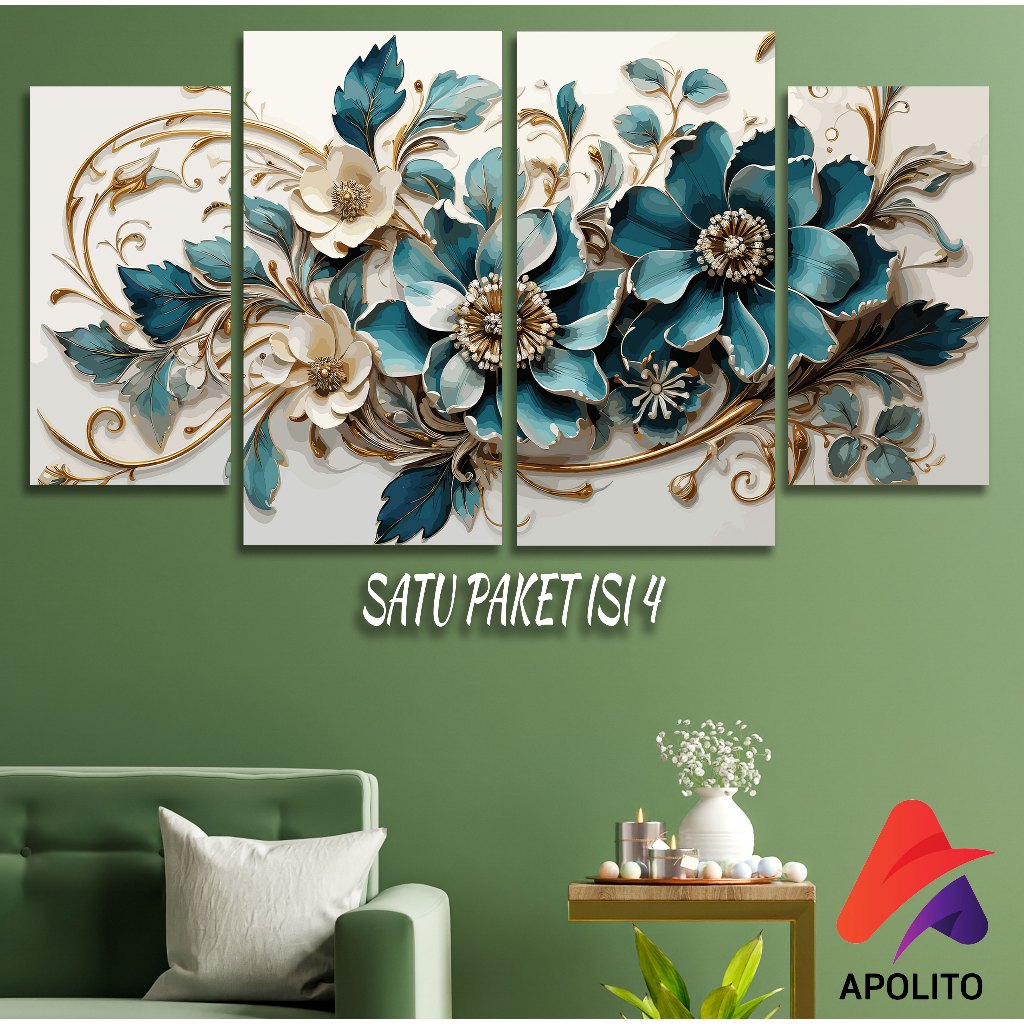 HIASAN DINDING SET ABSTRAK BUNGA HIJAU ISI 4 KAMAR DEKORASI RUMAH WALL DECOR PAJANGAN DINDING SET