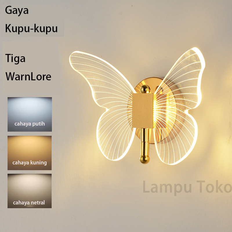 ✨Garansi & 3 warna ✨Lampu dinding kupu-kupu lampu Nordic baru lampu samping tempat tidur kamar tidur mewah hangat d