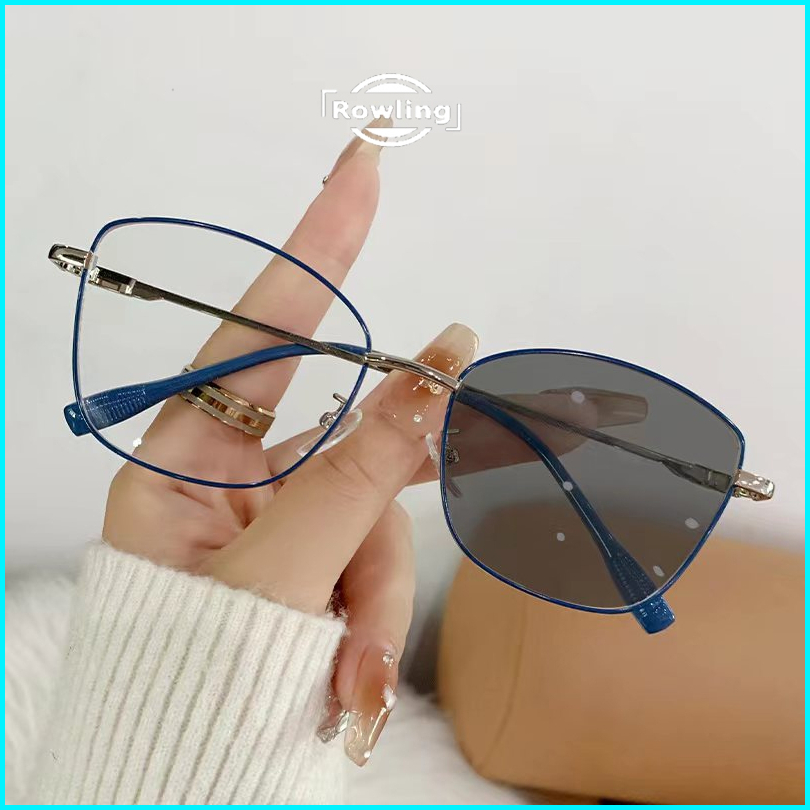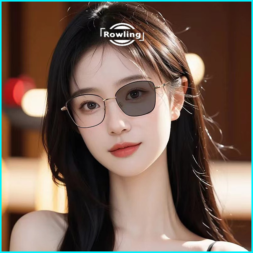 Rowling Pc-554 Kacamata Lensa Photocromic Anti Radiasi Wanita Kacamata Bingkai Kotak Titanium Anti Uv 2 In 1 Fotocromic