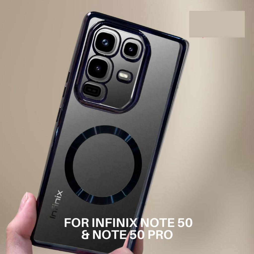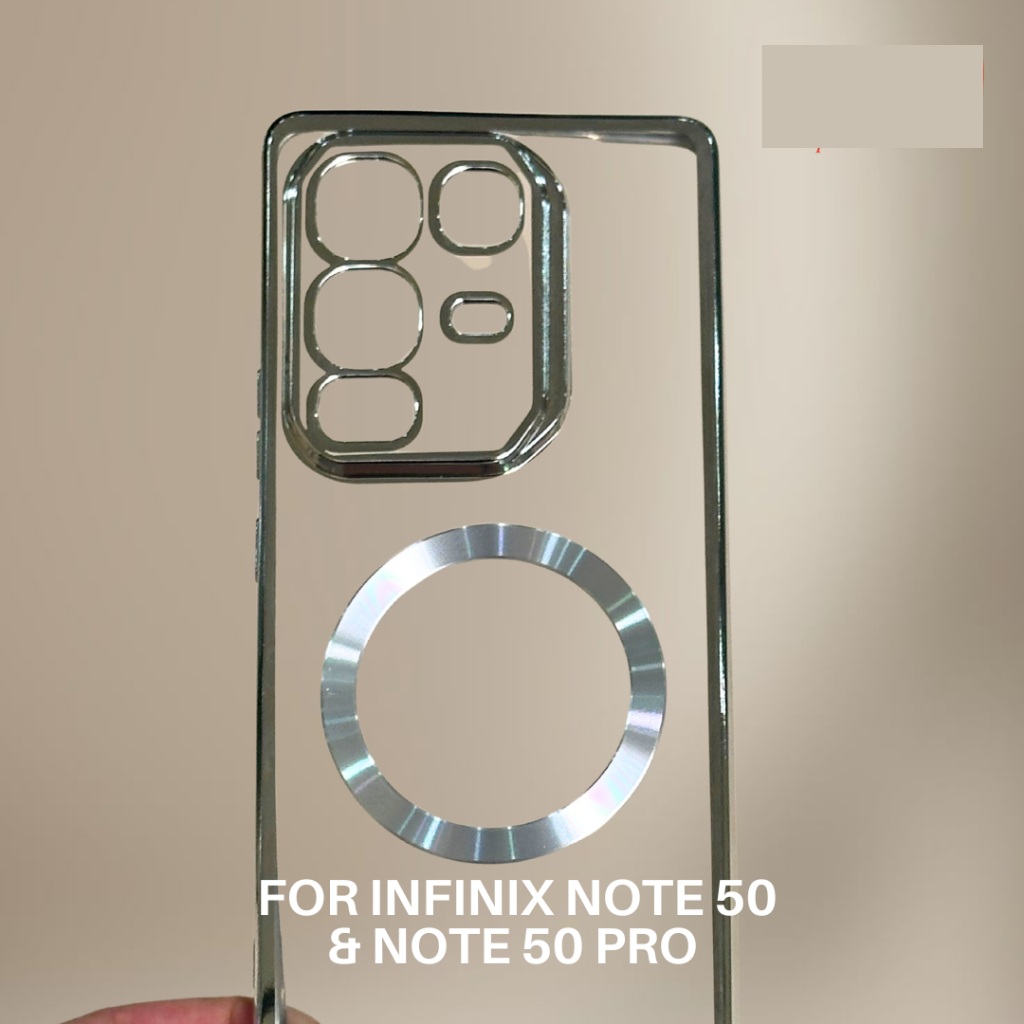 Case INFINIX NOTE 50 / NOTE 50 PRO 4G Clear Luxury Plating Magsafe Square List Chrome Casing Silikon Hp