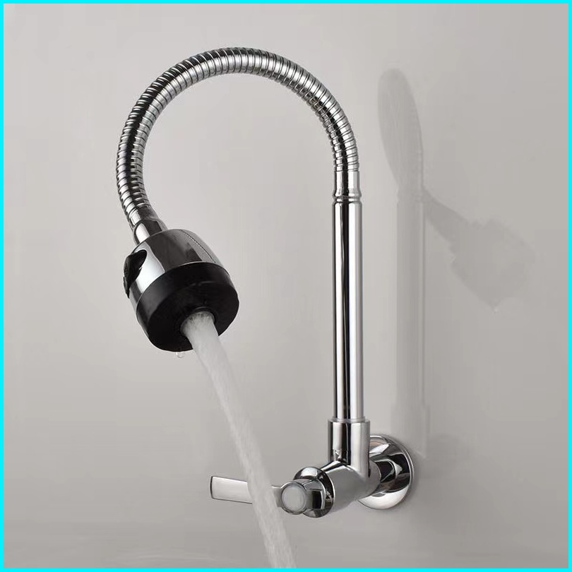 Sun Kran Air Angsa Fleksibel Wastafel Tembok Sink Stainless Kuningan Cuci Piring Minimalis Premium Keran