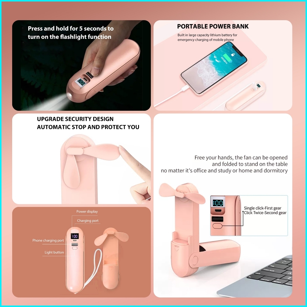 Jovitech Headset Led Kipas Powerbank 4 In 1 Wireless Earphone Mini Fan Flashlight Powerbank - T64
