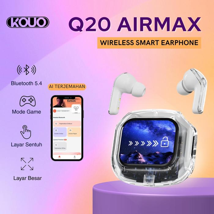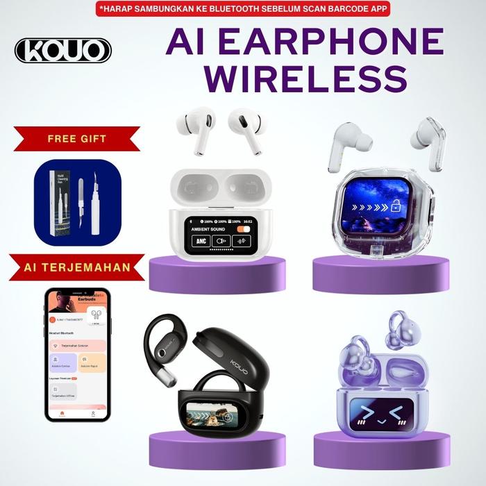 KOUO TWS AI EARBUDS WIRELESS EARPHONE LED TOUCHSCREEN AI PINTAR TERJEMAHAN BAHASA TYPE-C PORT AI ASISTEN HEADSET PEREKAM MEETING - DENGAN FITUR AI TWS A9 PRO