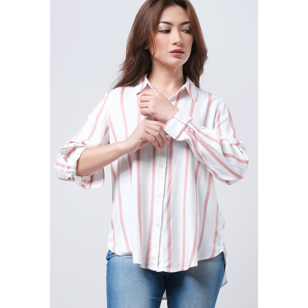 Logo Jeans Kemeja Wanita Jenny Offwhite Pink 24961L9OK
