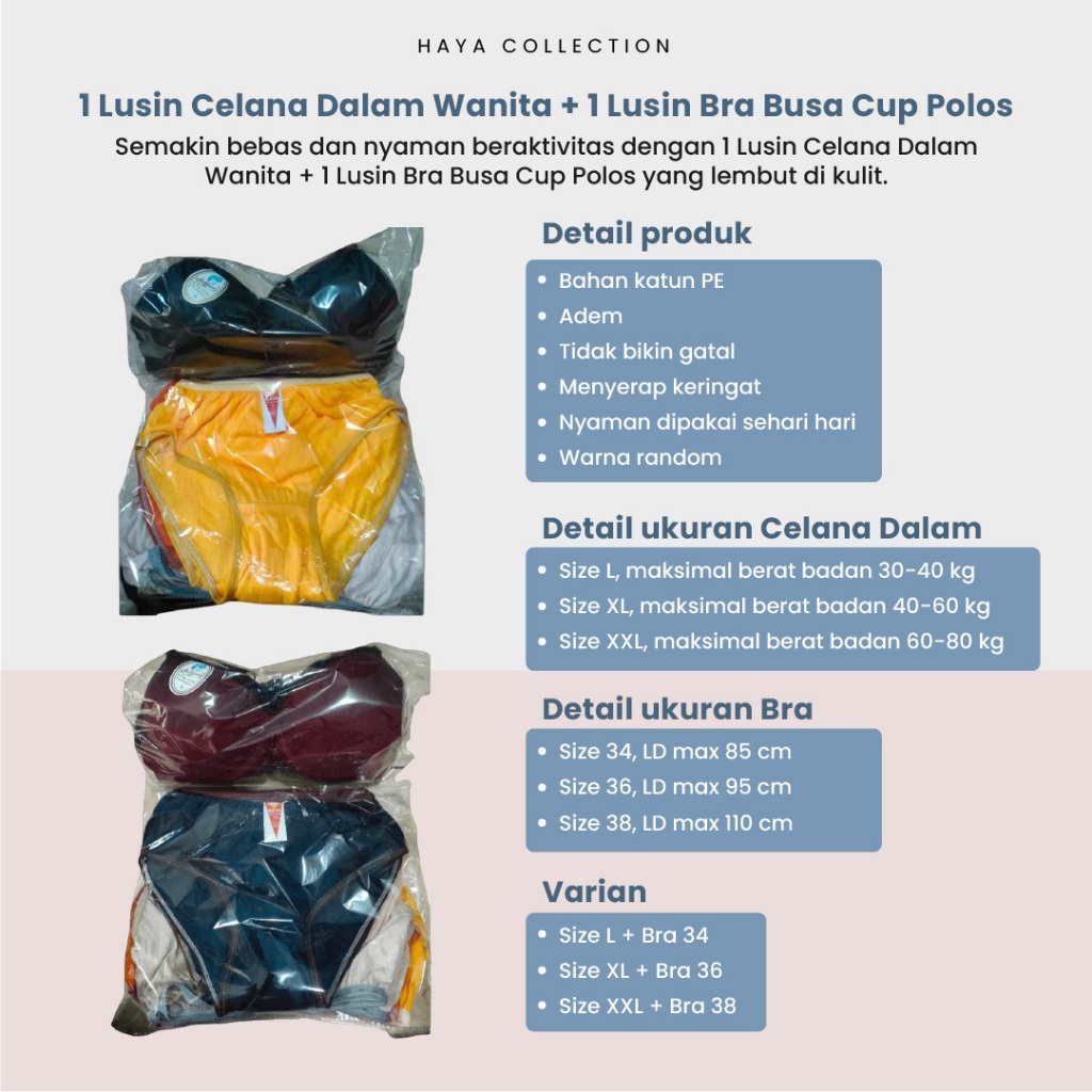 Paket Hemat Meriah 1 Lusin CD 1 Lusin Bra Pakaian Dalam Wanita Lusinan Bra Bh Busa Cup Dan Celana Dalam By Hayacolection