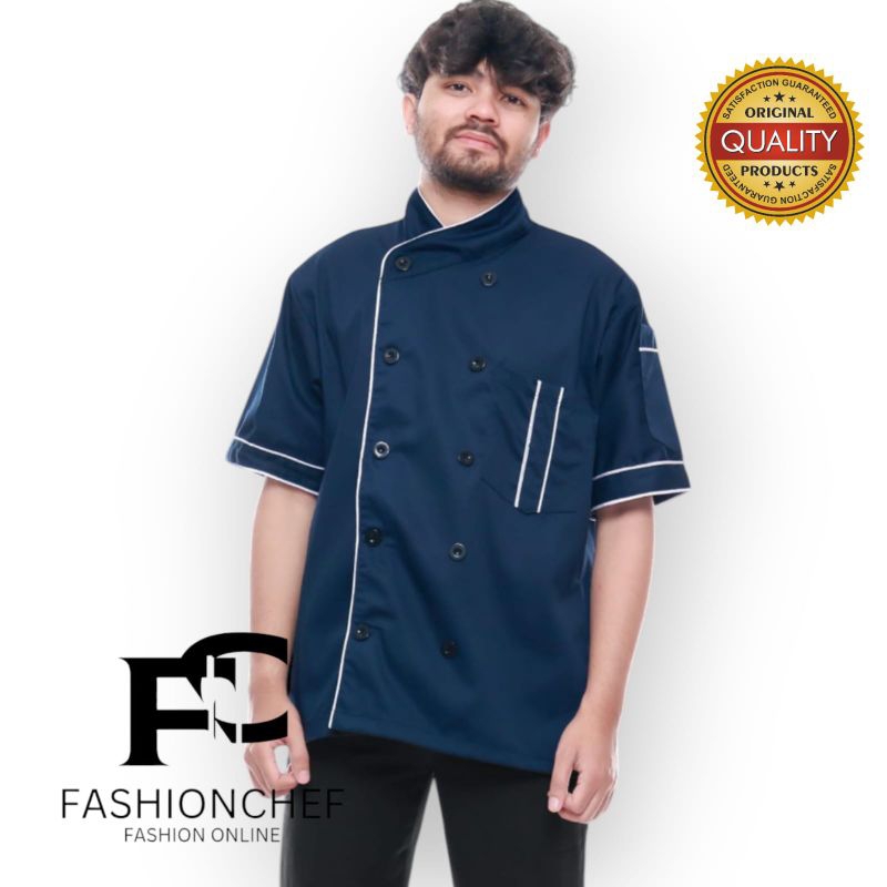 Baju koki chef seragam masak lengan pendek unisex pria wanita original