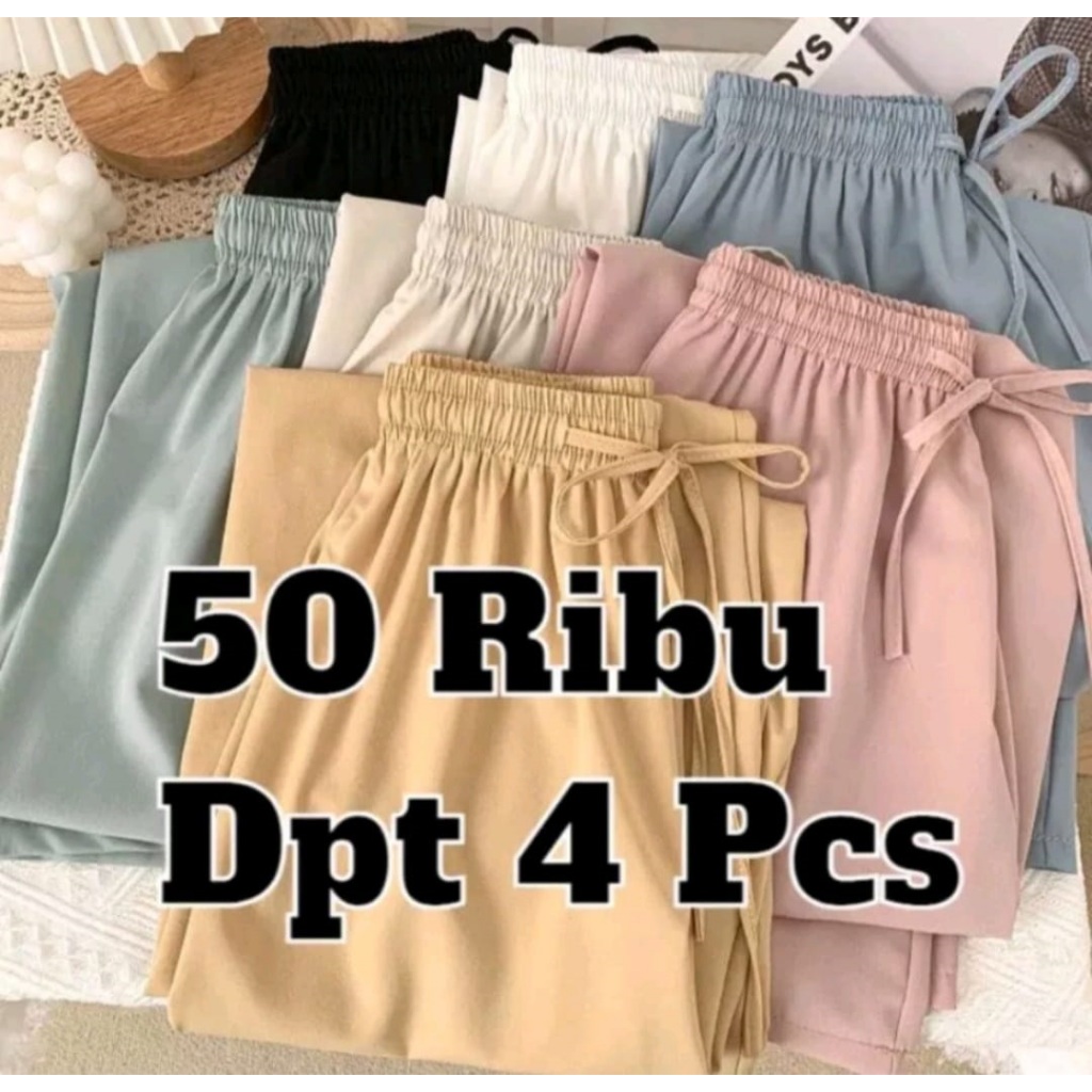 Promo 50 Dapat 4 Pics Celana Kulot Polos Wanita Kulot Bahan Hyget Premium Celana Kulot polos Uniqlo Linen Termurah