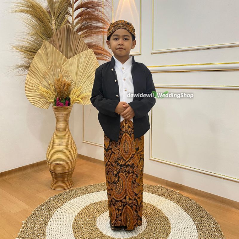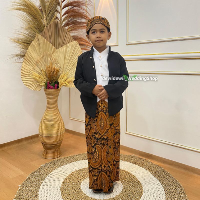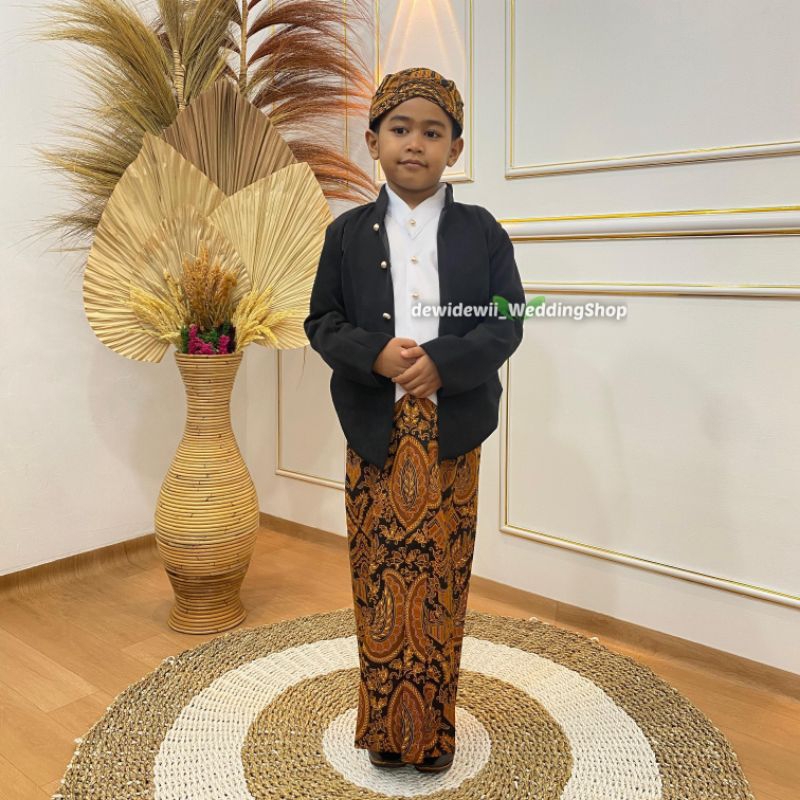 (1Set Anak Cowok) Adat Jawa Hewes / Beskap + Jarik + Blangkon + Benggol | Model Adam