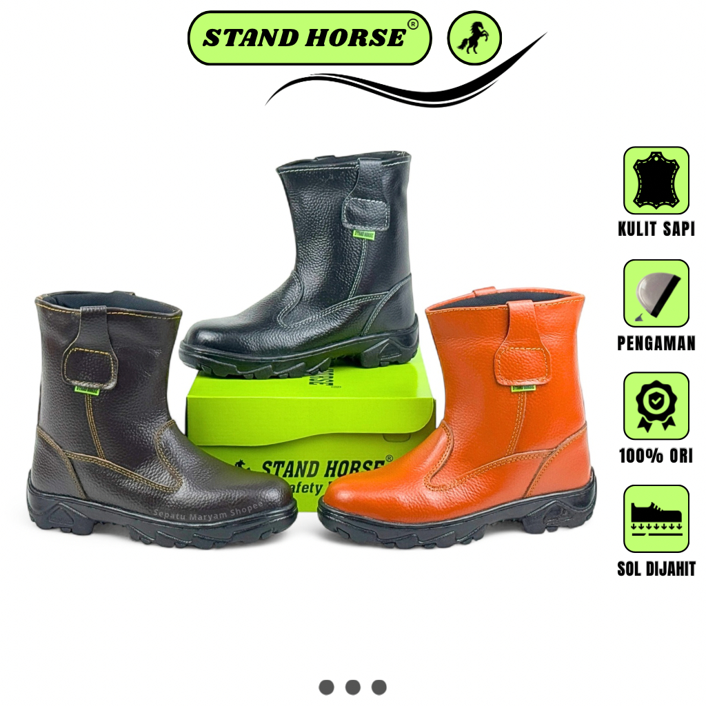 TERLARIS STAND HORSE - Sepatu Safety Pria Boots Proyek Kulit Sapi Asli Ujung Besi 807 Non Slip 36-45 Unisex