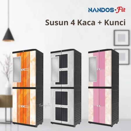 LEMARI - RAK BAJU - LEMARI PAKAIAN - RAK GANTUNG - LEMARI PAKAIAN PLASTIK SUSUN 4 KUNCI KACA STICKER