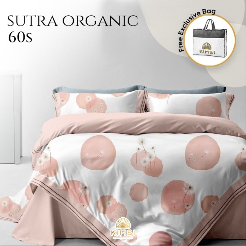 Bedcover Set Sprei Sutra Organic 60S Motif Bunga Minimalis Bed Cover 230X240 + Seprei 180X200X30 Sutra Kingkoil Uk Doubl