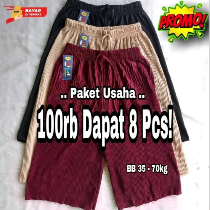 100RB DAPAT 8PCS CELANA KULOT BAWAH LUTUT/CELANA KULOT LIDI PLISKET PENDEK 7/8