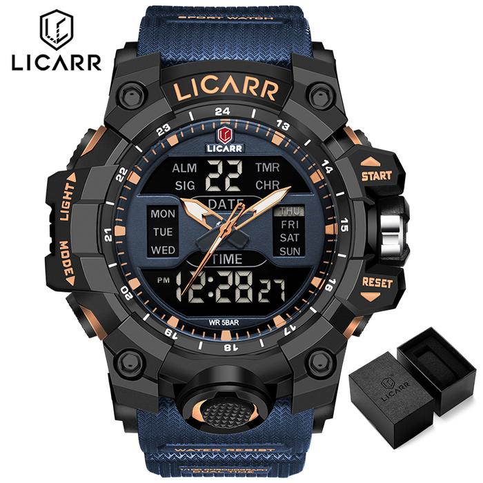 Jam Tangan Pria LICARR LIG GHT HOOW 22 23 Fashion Analog-Digital Kuarza Kasual Olahraga Tahan Air dengan Fungsi Alarm